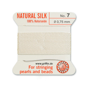 - Griffin Silk Beading Cord, White, #07, apprx 0.75mm (.030"), carded with needle (2 meters), (1 card)