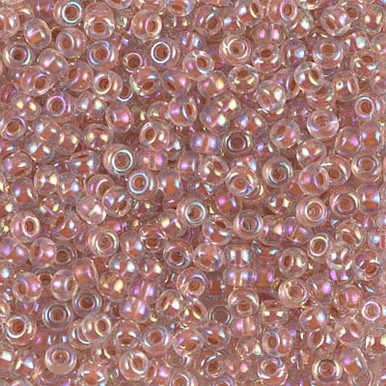 - Japanese Miyuki Seed Beads, size 8/0, SKU 189008.MY8-0275, salmon-lined crystal ab, (1 26-28 gram tube, apprx 1120 beads)
