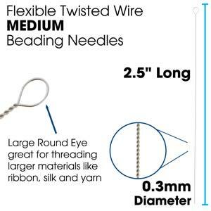 These needles are twisted wire with a loop at one end. They are used to go through beads when the regular straight needles can't fit, such as when you've gone through a bead many times with the thread. Most people like to have two sizes of these on hand.